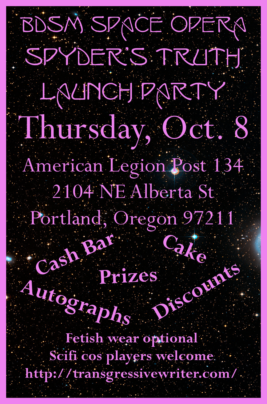 Mark your calendars to attend the book release party for Spyder's Truth, 8 p.m. Thursday, October 8, 2015 at
